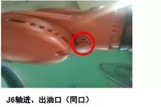 與上面幾個軸操作方法一樣,唯一不同的是J6軸的加油口、出油口在同一位置,共用。