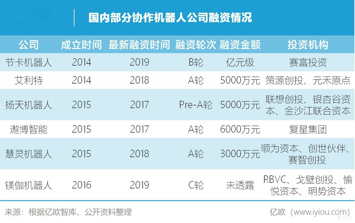 國內部分協作機器人公司融資情況